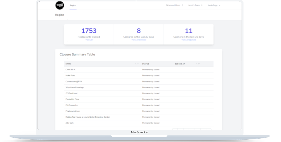 With Restaurant Tracker, you're always one step ahead. Our real-time tracking service alerts you to restaurant closures before they hit the mainstream, giving you the competitive edge in capitalizing on these opportunities. Embrace the power of knowledge and position yourself at the forefront of your industry with our unrivaled insights.